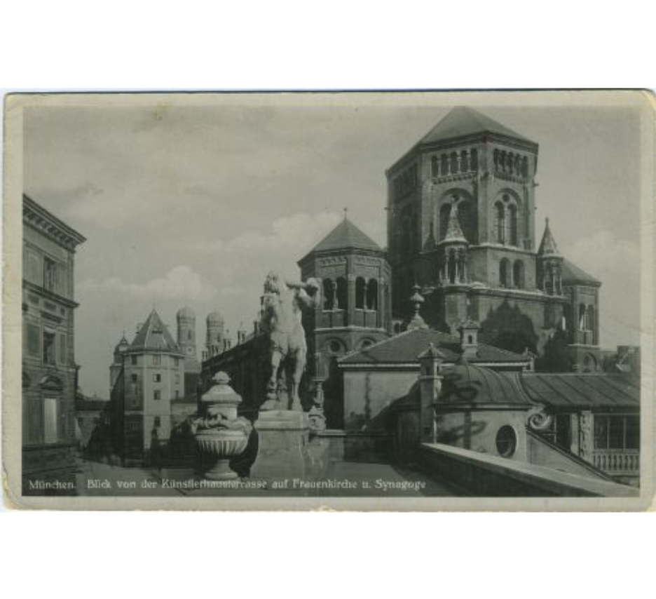 The Old Main Synagogue, which was one of the first synagogues in Germany to be destroyed by the Nazis in June 1938, stood on Herzog-Max-Straße near Karlsplatz. Today, only a massive memorial stone commemorates the former monumental building there.